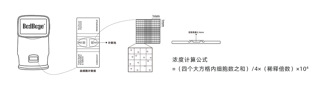 ·將加樣后的血細(xì)胞計(jì)數(shù)板放至細(xì)胞計(jì)數(shù)儀(JSY-SC-031H)的載物臺(tái)上,選擇對(duì)應(yīng)的計(jì)數(shù)模式,即可開(kāi)始細(xì)胞計(jì)數(shù)分析(濃度計(jì)算公式=(四個(gè)大方格內(nèi)細(xì)胞數(shù)之和)/4×(稀釋倍數(shù))×104)。