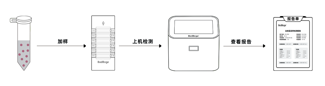 3-快速計數——超快速細胞計數活率分析,數秒內儀器即可完成細胞圖像采集、識別分析活/死細胞功能(下方為儀器操作流程圖)。