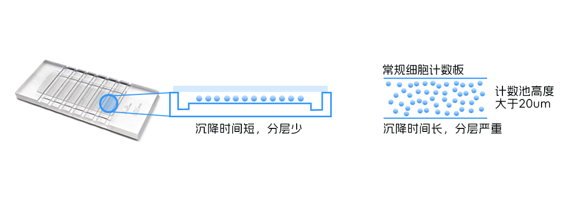 儀器適配專用計(jì)數(shù)板-高通量、計(jì)數(shù)池高度更低,可加速細(xì)菌等小顆粒的沉降,有效解決菌液分層問(wèn)題。