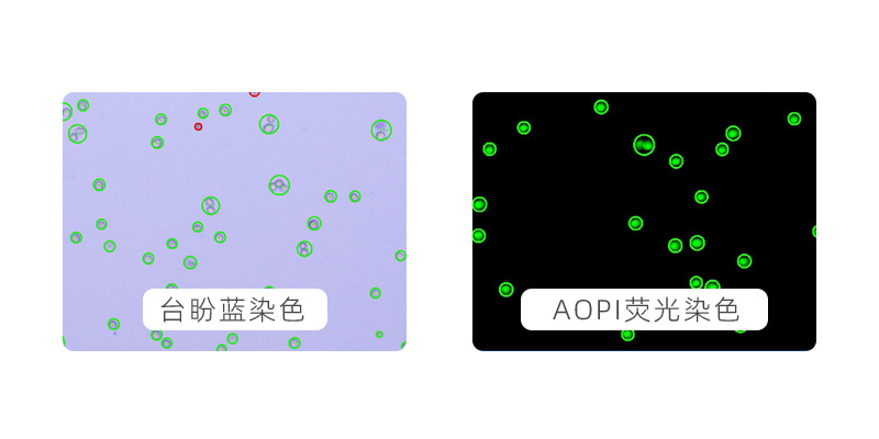 它搭載了明場和雙色熒光通道,具備臺盼藍染色計數和AOPI熒光染色計數模式,其中AOPI熒光染色計數適用于復雜細胞標本,如免疫細胞等,通過精準識別帶有特定熒光信號的細胞,來區分活細胞與死細胞。